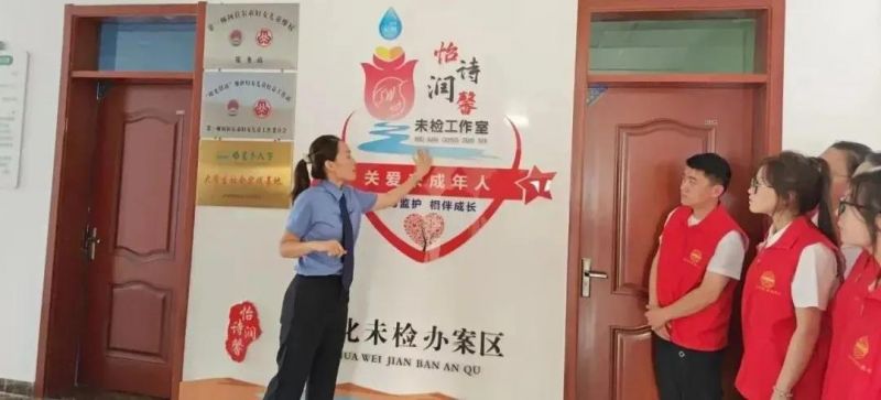 志愿者们实地参观了未检工作室,心理疏导室、沙盘模拟、法治宣传角等功能区,让大家直观感受司法保护未成年人的专业氛围。同时还围绕暑期法治宣讲的具体计划深入交流。
