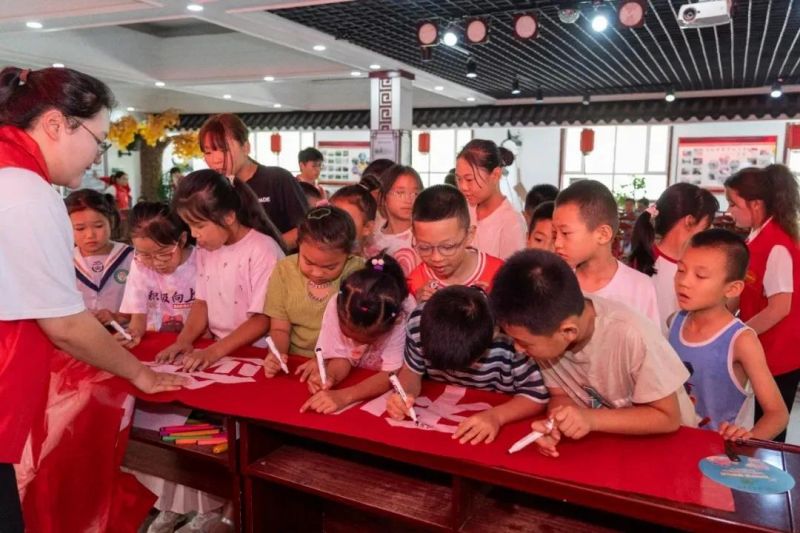 红色横幅“利剑护蕾静待花开”一拉开,孩子们立马排起队,一笔一划签下自己的名字。