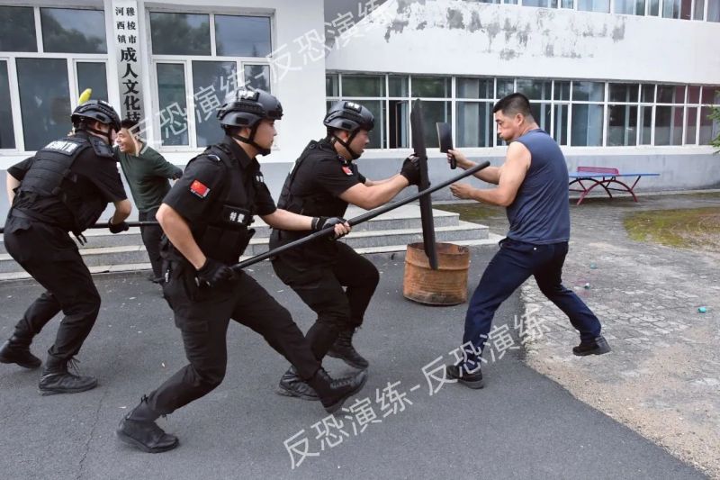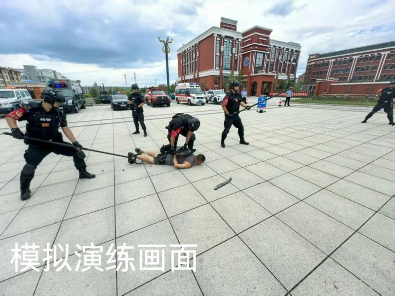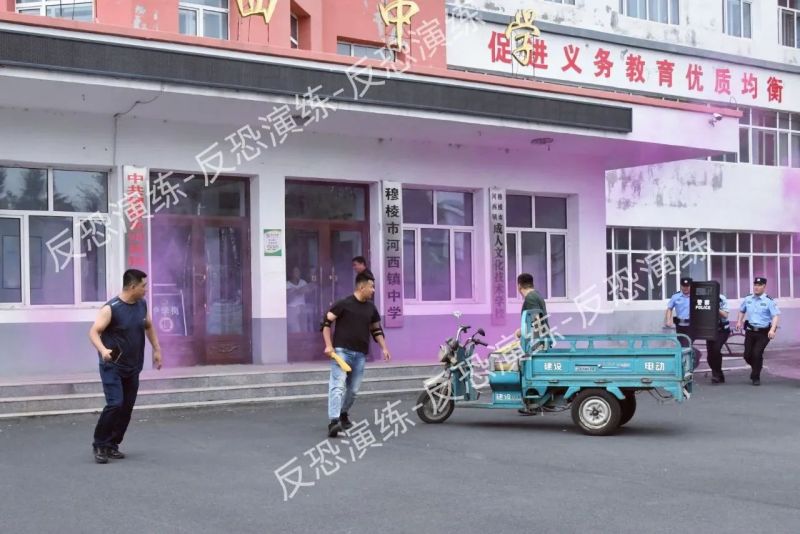 在牡丹江穆棱市河西镇中学,穆棱市公安局组织开展了一场多警种联动的反恐全要素模拟演练。