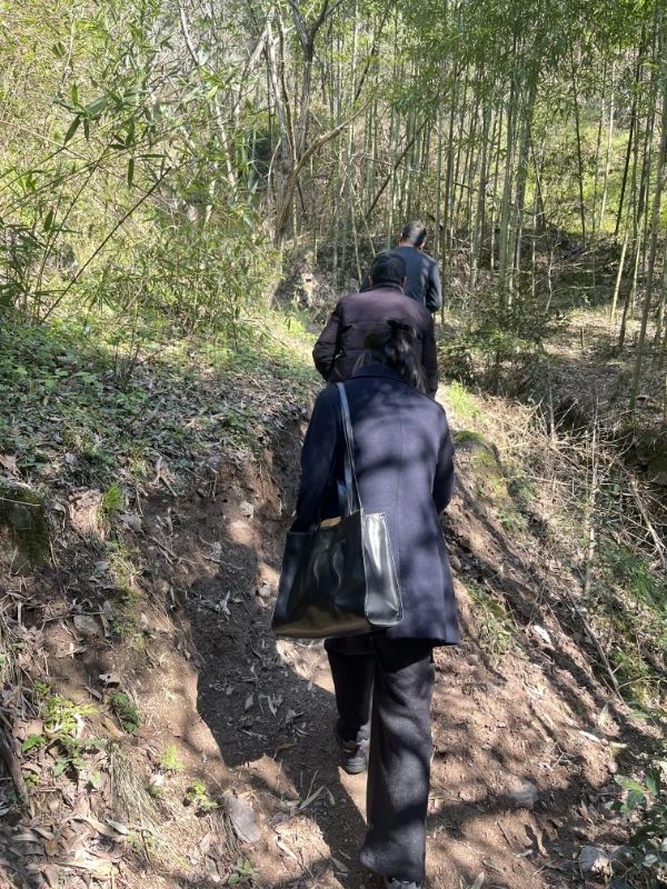 谷雨时节,在村干部的带领下,浙江省新昌县人民法院民一庭法官何赛丽与原、被告等一行,手脚并用地攀爬着陡峭的山壁。