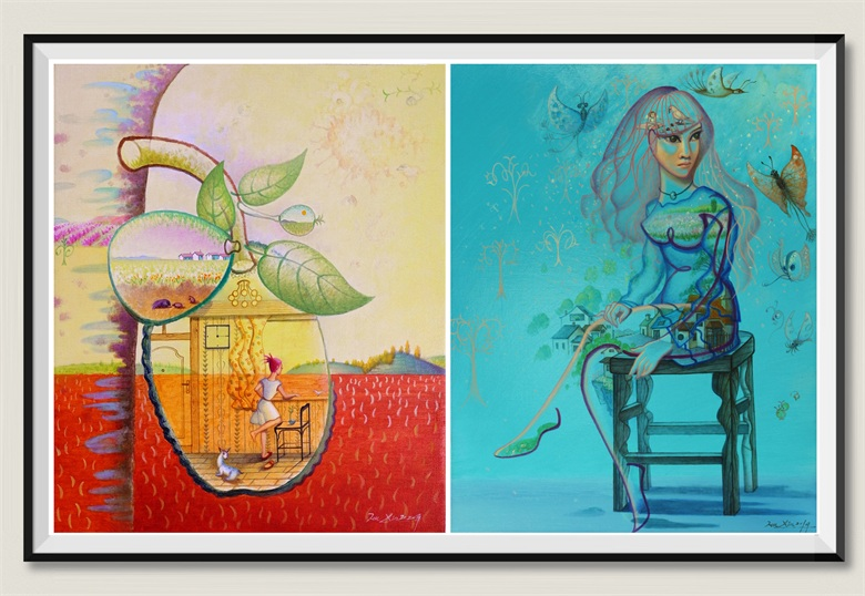当然,胡新的大画给人的惊奇就更多了。比如《变幻的空间》,胡新借助严谨的写实主义表现具象,却极尽天马行空的想象之力,升华为“表现主义”与“抽象形态”的艺术形式。