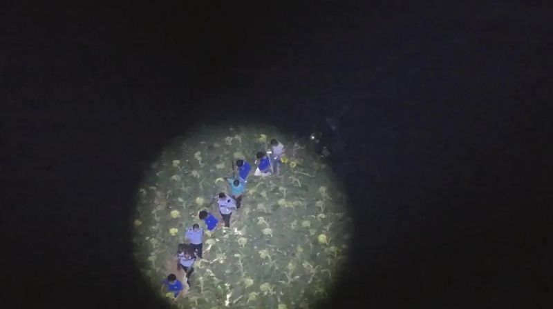 据观察,这片葵花地面积有二百余亩,且天色已完全黑了下去,地里的葵花植株高达2米,枝叶茂密,一眼望去如同“迷宫”,加之天气炎热,老人身上也没有携带手机、水和食物,已经10个小时过去了,民警辅警担心老人随时可能因脱水、中暑面临生命危险。