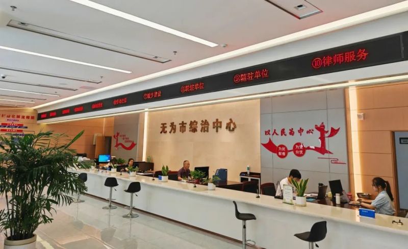 无为市综治中心围绕标识、导航、路引、分区、窗口功能室等进行提档升级:设置受理窗口和功能工作室14个;建立“受理-流转-办理-闭环-预警”全链条机制及督办问责机制,明确综治中心指导关系、组织架构、流程图等,以制度夯实根基。