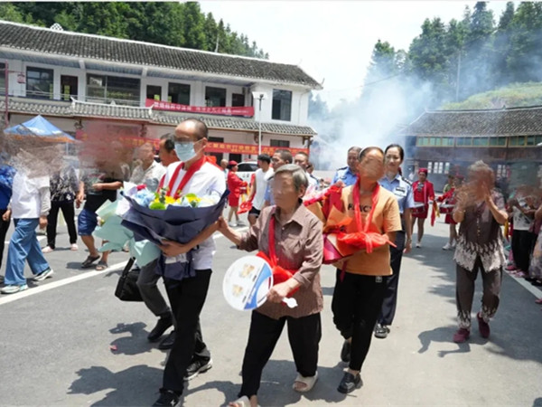 “宝田侗族伢子回克咯!”认亲仪式结束后,甘铃随父母回到了阔别33年的家乡——会同县宝田侗族苗族乡连道村,乡亲们自发地拉起横幅,放上烟花爆竹,组织腰鼓队庆祝这份迟来的喜悦。认亲宴上,龙香拉着甘铃与亲戚一一相认,多年的期盼化作了亲人之间相拥而泣。“感谢公安部门,感谢这么多年来坚持不懈地帮助我们,太感谢了!”张辉更是喜极而泣。