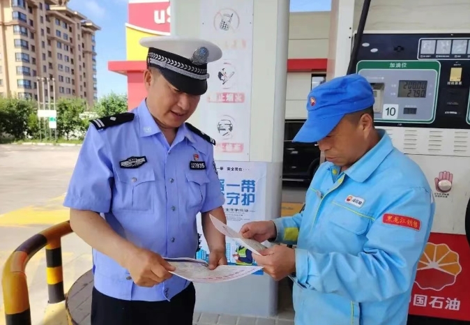绥化明水公安交通部门走进农村加油站开展“交通安全进油站”主题宣传,通过典型案例图解、违法行为警示展板,以案说法讲解农用车辆违法载人、无证驾驶、酒驾、骑乘摩托车不戴头盔等农村常见违法的危害,现场劝导未佩戴头盔的驾驶员。同时,与加油站工作人员交流,建议发挥宣传阵地作用提醒车主注意安全,并检查加油站消防设施,确保安全运营。