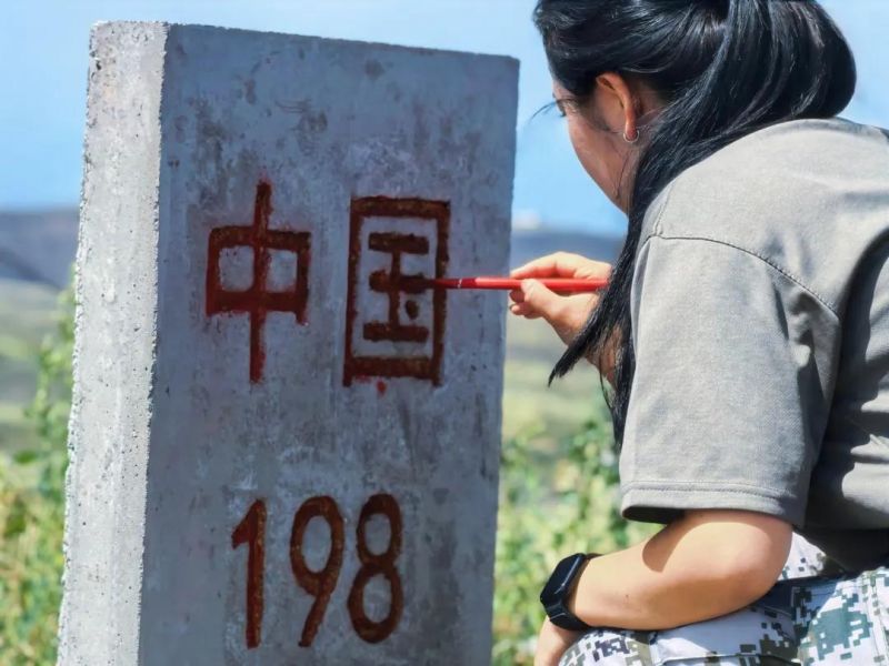 界碑矗立处,即是国门。当护边员的朱笔轻触碑面,鲜红国徽在戈壁骄阳下灼灼生辉。这抹红,是先烈血染的底色,是“但使龙城飞将在,不教胡马度阴山”的铮铮誓言。一涂一抹间,描摹的是主权尊严,浸染的是赤子丹心。屹立风沙中的界碑,因这中国红而化作移动的“钢铁界桩”,镇守山河,寸土不让。