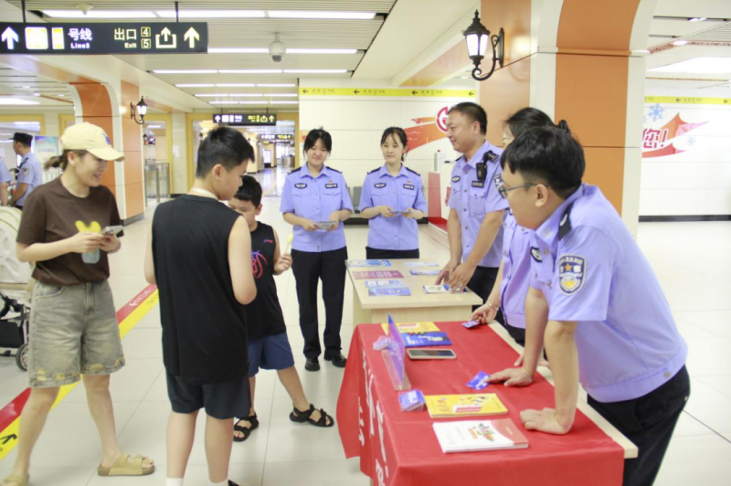 在地铁太平桥站的人流中,民警与司法局工作人员组成的宣传队伍格外醒目。他们针对通勤高峰时段乘客密集的特点,创新采用“流动宣传+定点咨询”模式,流动宣讲员沿站台向候车乘客发放安全手册,定点咨询台则聚焦群众关切,结合真实案例讲解实用法律法规。“遇到座位纠纷该怎么处理?”“物品遗失后如何通过法律途径找回?”面对乘客的提问,宣讲员们用通俗语言拆解法律条文,让专业知识变得“听得懂、用得上”。
