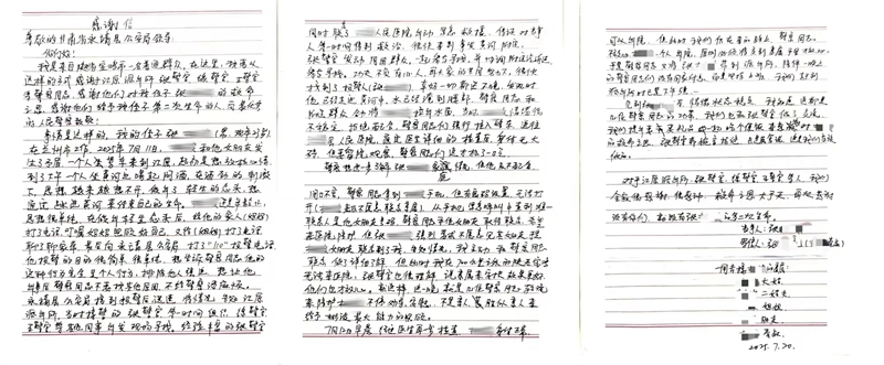 近日,甘肃省临夏州永靖县公安局三塬派出所民警成功挽救一名轻生男子,并24小时暖心守护直至远在陕西的家属赶来。7月20日,被救男子家属千里之外手写感谢信寄到派出所,讲述了事发当天的经过,并对参与救援和在医院轮流陪护的民辅警表达深深的谢意。