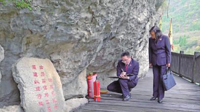 广元市检察院检察官在明月峡古栈道实地查看情况
