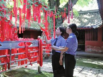 相关部门为庄严古建与千年银杏精心“建档立户”,架设守护护栏,科学重设祈福带悬挂区域。检察机关支持仁圣宫品牌IP创意开发,并结合鲜活的故事开展“滴灌式”普法,让文化科普在与游客的互动中生根。