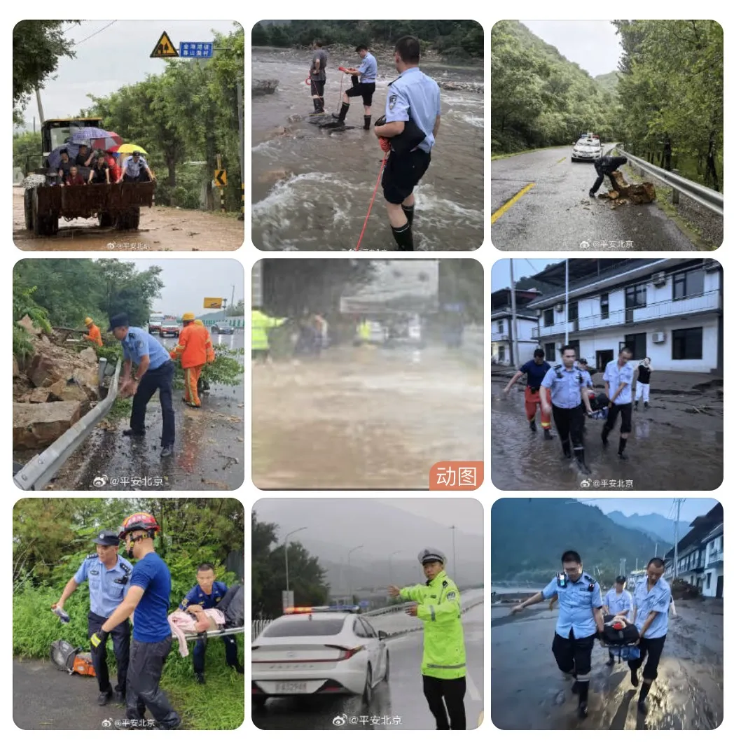 怀柔区琉璃庙镇持续强降雨,怀柔分局琉璃庙派出所全体警力投入到抢险救灾工作中,所有人的衣服都被水、泥沙浸泡了,他们穿着几斤重的警服奋战了一夜。
