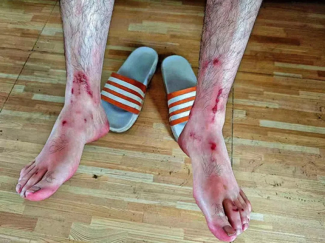 怀柔分局泉河派出所、琉璃庙派出所民警与消防官兵一起徒步近30公里前往琉璃庙镇崎峰茶村开展救援工作。这是一路泥泞走下来后的双脚,令人心疼。
