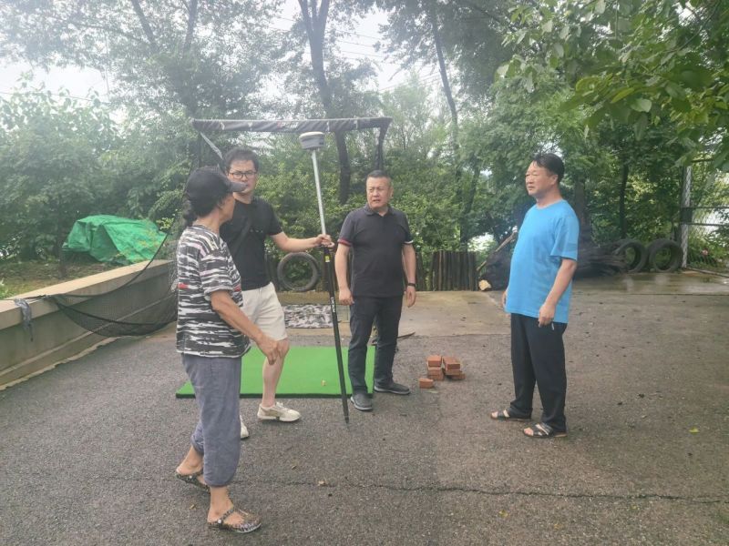 密云法院驻村第一书记赵立军与党员干部及村民一起加固防汛设施(右1)