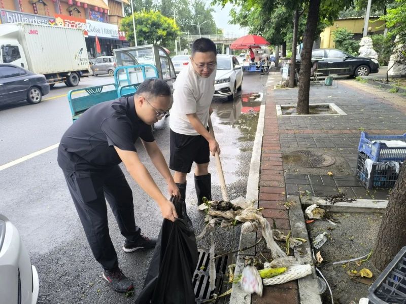 太师屯法庭“青年突击队”干警参与法庭外的路面清淤