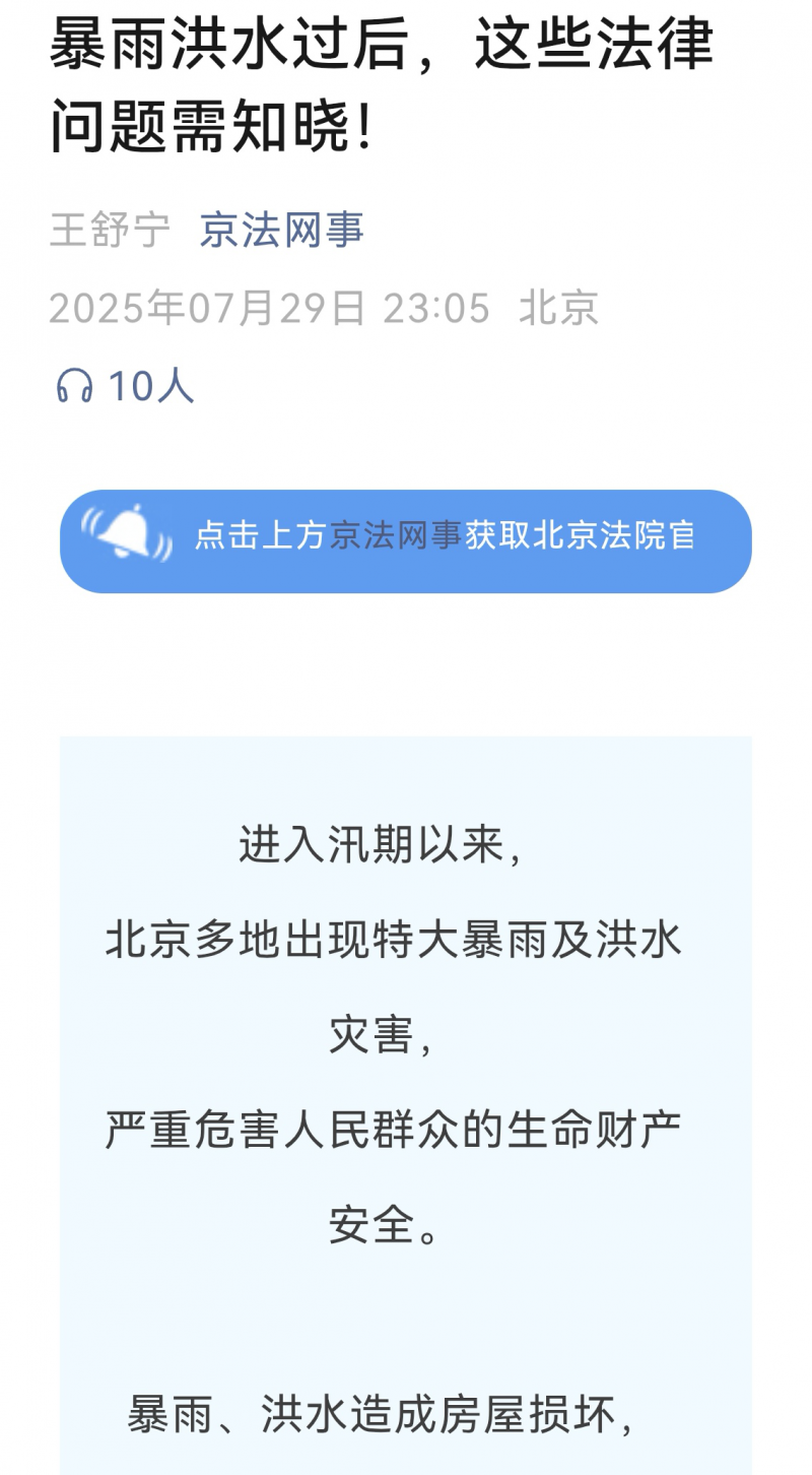 密云法院制作《暴雨洪水过后,这些法律问题需知晓!》普法文章