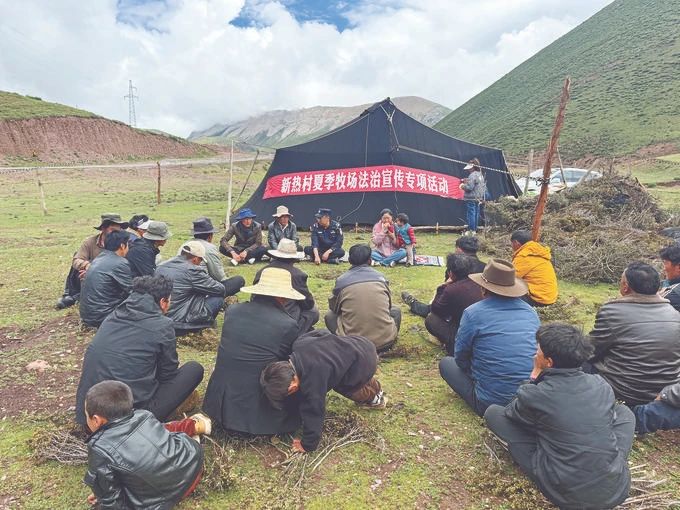 近日,类乌齐县公安局类乌齐镇派出所民警辅警来到辖区夏季牧场开展法律知识宣传活动。