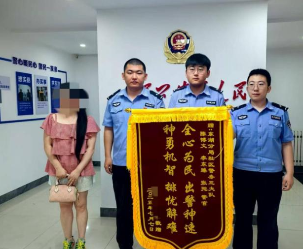 近日,大庆市公安局东湖分局接到辖区居民报警称,自家孩子在夏夜外出后迟迟未归,家人十分着急。接警后,民警火速响应,一边安抚濒临崩溃的家属,一边部署警力展开地毯式搜寻。民警调阅大量公共视频,反复研判轨迹;深入辖区各个角落,走访周边群众,不放过一丝线索。时间一分一秒流逝,搜寻工作持续了整整十个小时。最终,在一处绿化带旁找到了茫然无助的女孩。当民警将女孩安全护送回亲人怀抱时,家属激动得热泪盈眶。一面印着“全心为民,排忧解难”的锦旗,道不尽家属心中那份沉甸甸的感激。