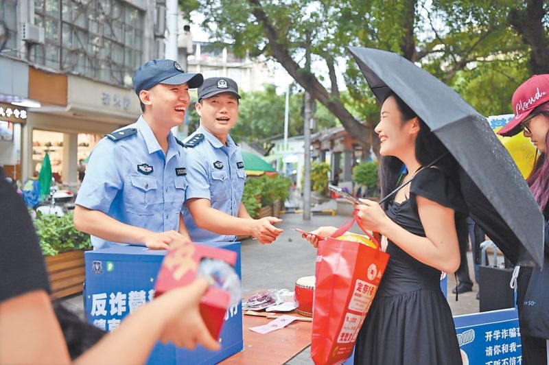 民辅警向市民宣传反诈知识。