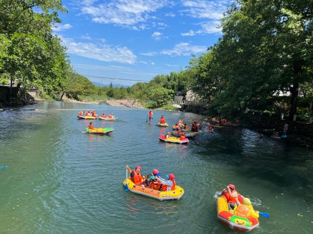 依托这一湾林间“活水”,漂流景区每年为村集体经济带来约140万元的增收,还成功撬动乡村旅游产业链,60多家风格各异的民宿、农家乐在河道两岸如雨后春笋般冒了出来。