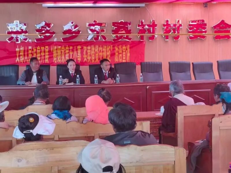 一场以“婚姻家庭无小事买卖借贷守规矩”为主题的法治宣讲会在村里开讲,尼玛文部法庭干警结合常用的法律,围绕村民常遇到的婚姻家庭、邻里、民间借贷等纠纷,用熟悉的“乡音”拆解法理,拿身边人、身边事“对症讲解”,句句说到村民心坎里,让大家听得懂、记得住、用得上。聂荣查当法庭干警深入辖区商业街开展专项普法活动,针对虫草买卖、商铺经营、民间借贷等日常高频纠纷,围绕合同签订、货物验收、价款结算等关键环节,细致讲解风险防范要点,提醒商户要尊法、学法、守法、用法。