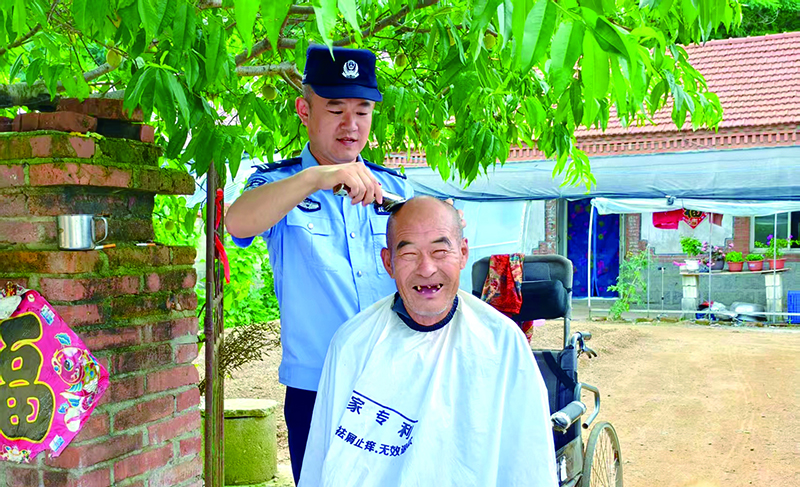 嗡嗡……8月12日,在东港市黄土坎镇栾家村的一处树荫下,电动理发器的声音响个不停,党员民警夏远亮、柳东尼与3名爱心志愿者理发师一起为多名孤寡老人理发。78岁的张爷爷摸着短发,倍感清爽,笑得合不拢嘴:“这些孩子比亲人还上心!”