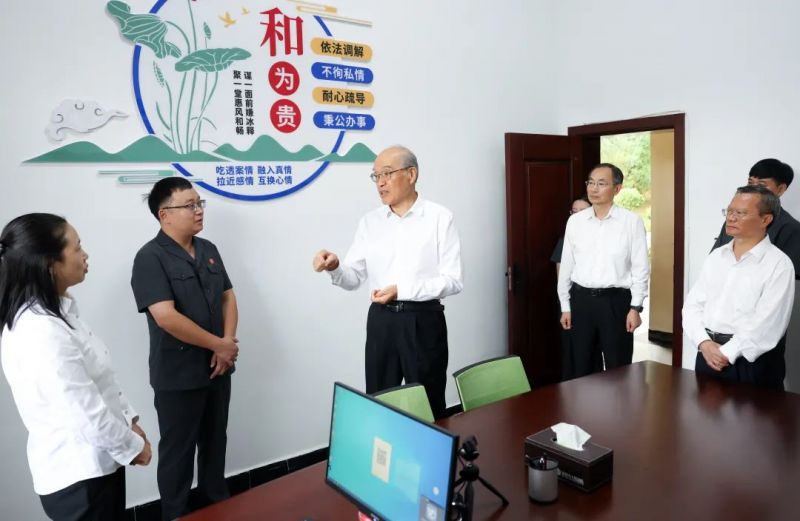 最高人民法院党组书记、院长张军率领调研组在铜仁万山区法院调研。