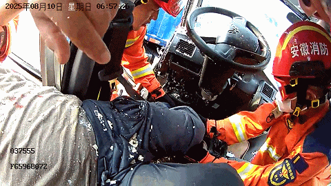 司机汪某某被死死卡在车内