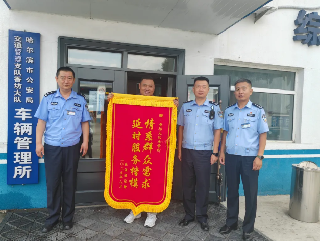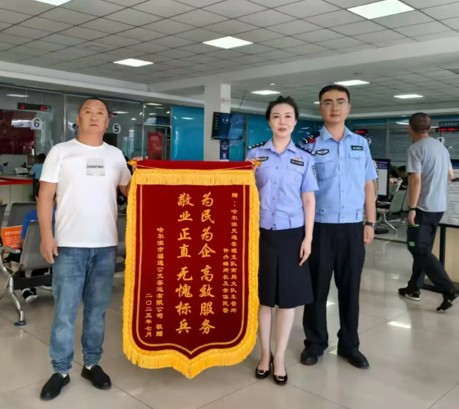 “原本担心56笔抵押业务要跑好几趟,没想到民警加班集中办完,一点没耽误运营!”近日,黑龙江省哈尔滨市福通公交公司负责人来到南岗大队车辆管理二所,将一面写有“为民为企高效服务敬业正直无愧标兵”的锦旗,送到民警手中,这不仅是对窗口服务的肯定,更展现了哈尔滨市公安局车辆管理所优化营商环境的实效。