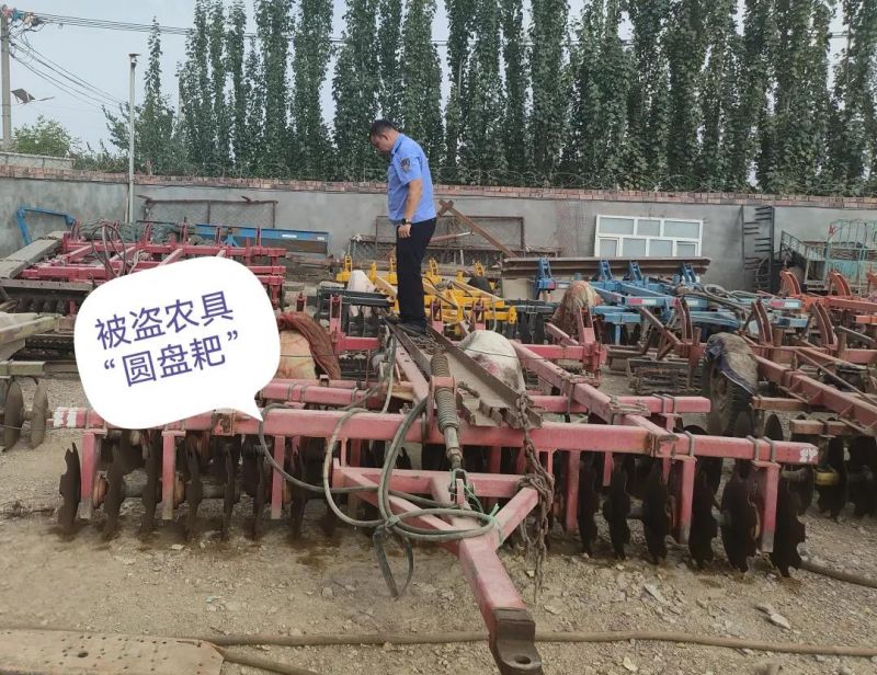 8月12日,前进派出所接到辖区居民王先生报案,称其6月21日将农具圆盘耙放在家中,8月12日准备犁地时,发现丢失了。这圆盘耙是王先生家中的重要生产工具,价值约2万余元。