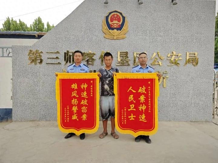 8月17日下午,第三师45团前海镇居民王先生将两面分别印有“人民卫士破案神速”“神速破窃案雄风扬警威”字样的锦旗送到喀什垦区公安局前进派出所。对民辅警帮其追回被盗农具,挽回2万余元损失的表示感谢。