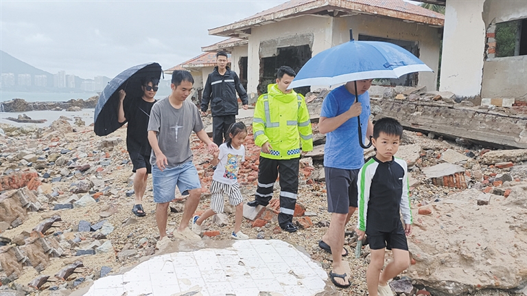 8月24日下午,三亚市公安局吉阳分局大东海派出所执勤警力到海边劝离游玩群众。(三亚警方供图)