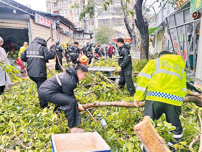 劝离海边游玩游客,转移救助受灾群众,紧急清障恢复交通……政法干部、公安民警辅警、消防救援人员闻令而动,无惧狂风暴雨,毅然奔赴在保障群众生命财产安全的第一线,用坚实的身躯筑起一道道安全防线。台风后,他们又积极投入到了紧张的灾后恢复之中,帮助群众加快恢复正常生产生活秩序,忙碌的身影温暖了受灾群众。(吕书圣)