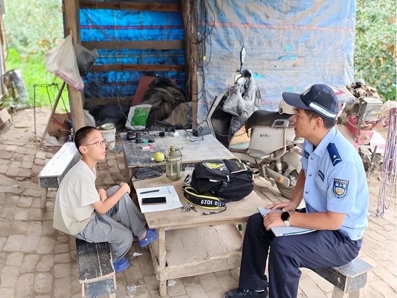 辅警位留洋来到留守儿童乐乐家。“乐乐,放假了,河边水塘千万别一个人去,水底下可能有漩涡,很危险。”“在家别用湿手碰插座,那‘小窟窿’会电人。看到陌生人在附近转悠,别理,赶紧回家告诉奶奶。”临走,他把电话写在纸条上,压在堂屋桌子玻璃板下:“有事打这个电话,我们一会儿就到。”