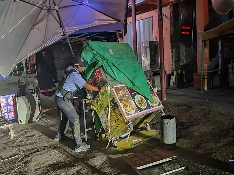 深夜,一场突如其来的大风刮过市场。第二天有集市,许多摊贩的小推车就停放在摊位旁。狂风过后,不少推车被掀翻在地,物品散落。巡逻至此的辅警叶国强见状,立刻行动起来。他们借路灯光,一辆一辆地将倒伏的摊车扶正,把吹散的棚布简单归拢。周围静悄悄的,居民们都在熟睡。他默默忙碌了近一个小时,扶正了二十多辆摊车。