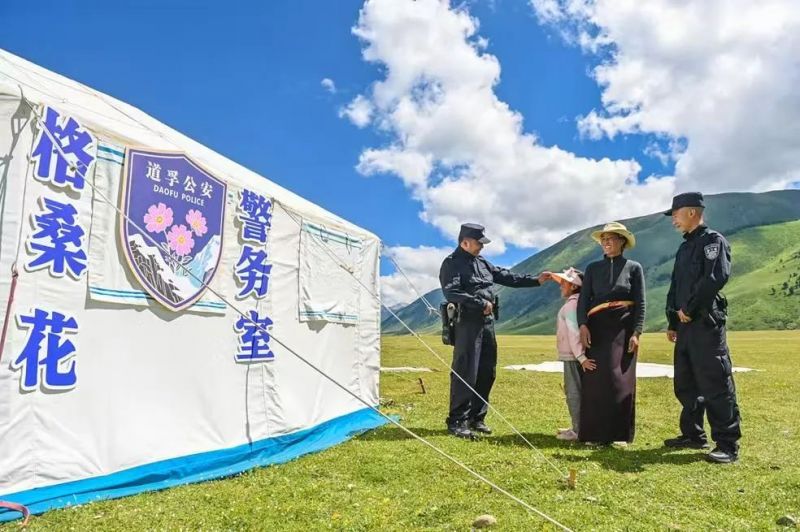 在龙灯草原、玉科草原的花海间,“格桑花帐篷警务室”始终亮着暖光。游客丢了东西能找回来,遇到矛盾纠纷能当场化解,车辆受困也有人及时帮忙。