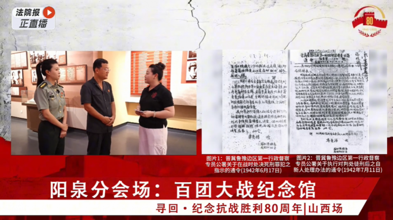 近日,人民法院新闻传媒总社推出“寻回·中国人民抗日战争暨世界反法西斯战争胜利80周年”系列直播的首场直播,邀请多位法官、专家学者以及抗战纪念馆工作人员,带领网友们一同走进晋察冀、晋绥、晋冀鲁豫抗日根据地的发源地——山西,寻回血火淬炼的法治初心。