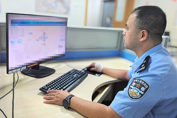 民警在智控平台上实时监控全区工程运输车辆的行驶情况