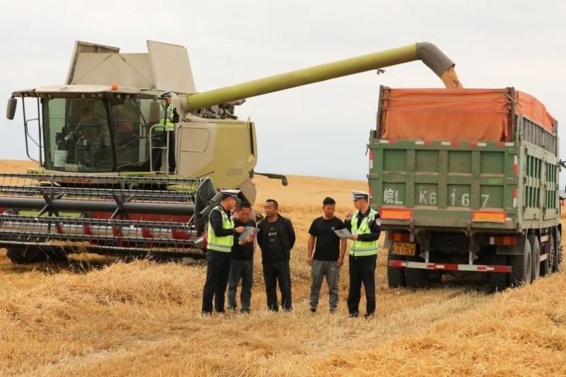 “师傅,农机上路前一定要检查刹车、灯光,可不能带着故障作业!”在一处小麦收割现场,民辅警用“拉家常”的通俗语言,向农机手和农户讲解安全知识。