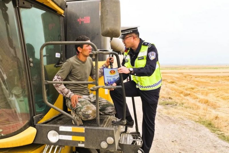 秋收农忙时节,也是农机作业安全风险的高发期。为切实筑牢农机安全生产防线,有效预防和减少涉农道路交通事故,保障辖区职工群众生命财产安全与秋收生产顺利推进,8月24日,第四师昭苏垦区公安局交通管理大队主动靠前服务,组织民辅警深入辖区田间地头,开展“点对点、面对面”的秋收农机安全宣传活动,以“公安蓝”守护“丰收黄”,为秋收生产保驾护航。