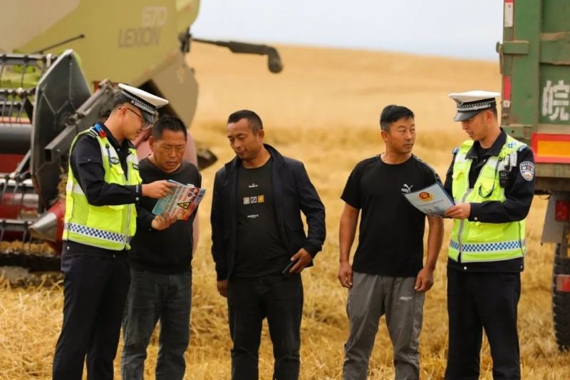 “师傅,农机上路前一定要检查刹车、灯光,可不能带着故障作业!”在一处小麦收割现场,民辅警用“拉家常”的通俗语言,向农机手和农户讲解安全知识。