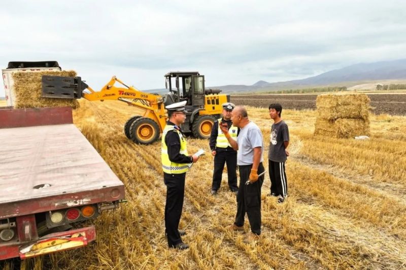 秋收农忙时节,也是农机作业安全风险的高发期。为切实筑牢农机安全生产防线,有效预防和减少涉农道路交通事故,保障辖区职工群众生命财产安全与秋收生产顺利推进,8月24日,第四师昭苏垦区公安局交通管理大队主动靠前服务,组织民辅警深入辖区田间地头,开展“点对点、面对面”的秋收农机安全宣传活动,以“公安蓝”守护“丰收黄”,为秋收生产保驾护航。