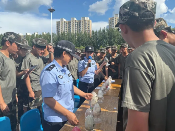 蓝天白云下,黑龙江省绥化市肇东市第一中学军训学生围在民警身旁,专注地聆听禁毒知识,近距离观察仿真毒品的外型。一句“跟我平时喝的奶茶真像”惹来周围一片笑声,法治宣讲在轻松愉快的氛围下进行。