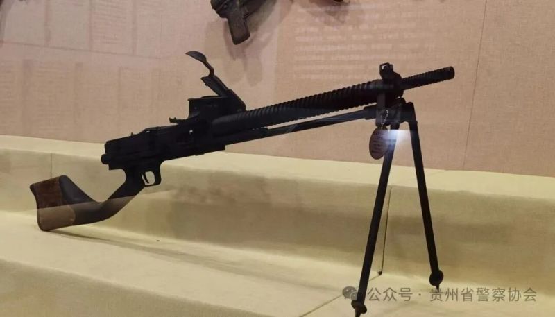 贵州省第一代老公安从抗日战场上缴获的歪把子机枪。