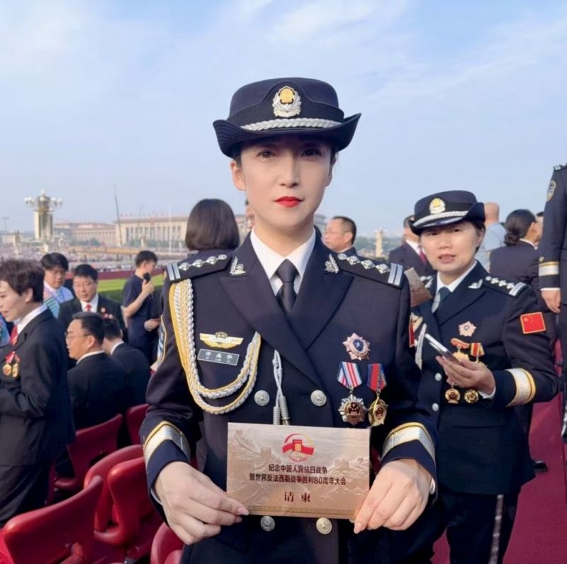 她说,站在天安门观礼台上,心潮澎湃。习近平总书记的讲话令人振奋,阅兵队伍英姿飒爽,让我深切感受到国家的强盛和民族的自豪,这份荣耀属于每一位坚守的公安民警。我将把今天的感受转化为动力,以实际行动践行初心使命,用忠诚和担当守护社会安宁。