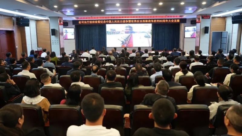 9月3日9时,北京天安门广场旌旗猎猎、铁甲生辉,纪念中国人民抗日战争暨世界反法西斯战争胜利80周年大会隆重举行。云南省司法厅报告厅内座无虚席,省司法厅党委班子成员带领机关全体干部职工集中收看大会直播实况。