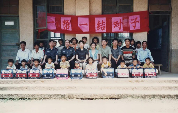 在东街派出所档案室的旧相册里,一张泛黄的照片静静地诉说着时光的流逝:两名身着九九式警服的民警与师生并肩而立,孩子们面前摆着崭新的书包,背景横幅上“一帮一结对子”的字迹依然清晰。