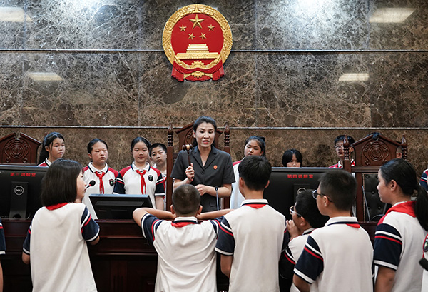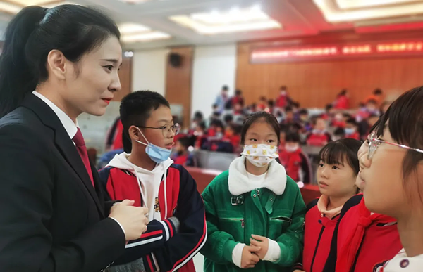 朱秀敏在法院开放日与孩子们进行现场互动式普法