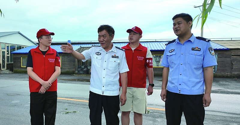 李春和(左二)在指导驻村民辅警、平安志愿者开展巡逻工作
