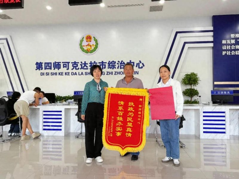 9月4日,新疆生产建设兵团第四师可克达拉市综治中心大厅内暖意融融,铁厂沟社区居民吕某紧紧握着工作人员的手,将一面写着“执政为民显真情情系百姓办实事”的锦旗和一封字迹工整的感谢信郑重递上。这温暖的一幕,正是综治中心主动牵头、多部门紧密联动,以高效协同之力化解群众急难愁盼问题的生动缩影。