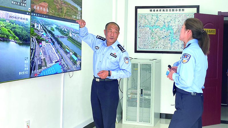 李春和(左二)在指导驻村民辅警、平安志愿者开展巡逻工作